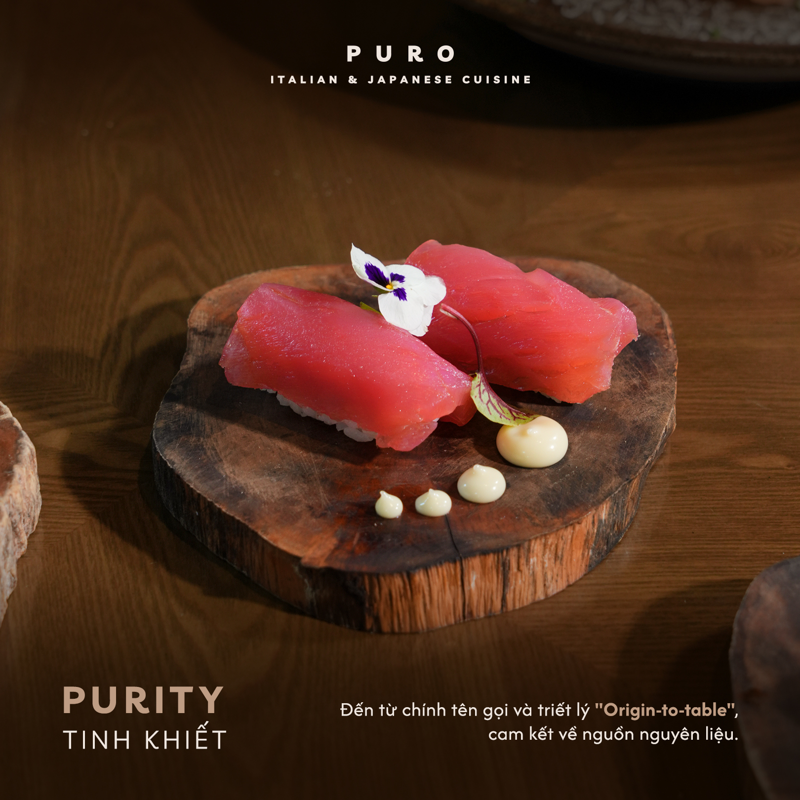 Câu chuyện của Puro khởi nguồn từ niềm tin vào ẩm thực bắt đầu từ tình yêu và sự tôn trọng đối với những gì nguyên bản nhất. Từ đó, Puro bắt đầu hành trình ẩm thực của sự giao thoa giữa nước Ý phóng khoáng và Nhật Bản tỉ mỉ.